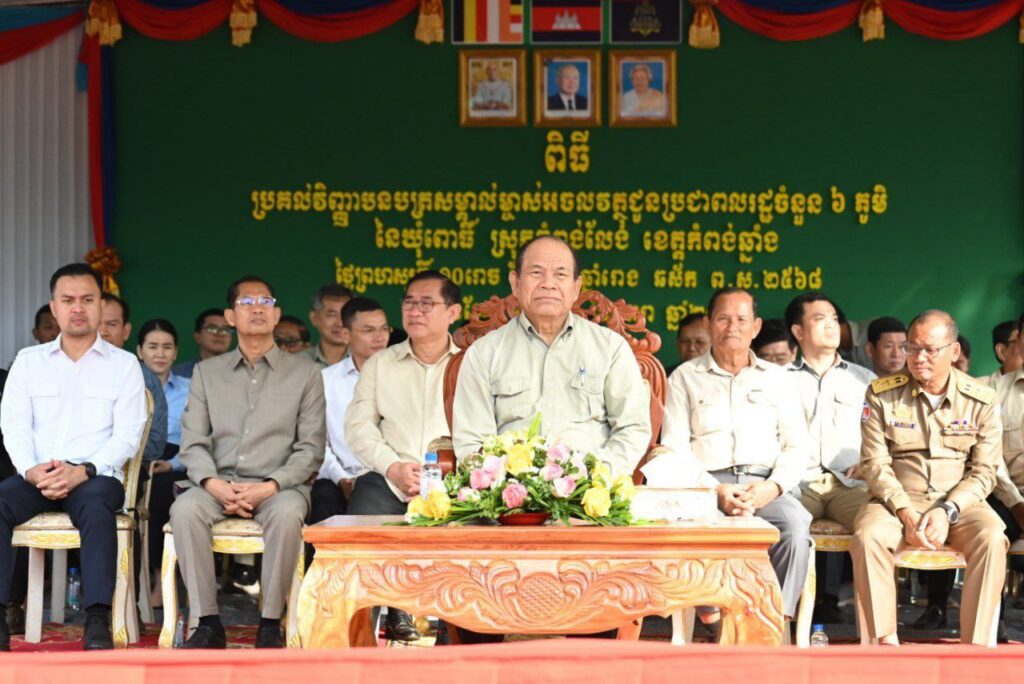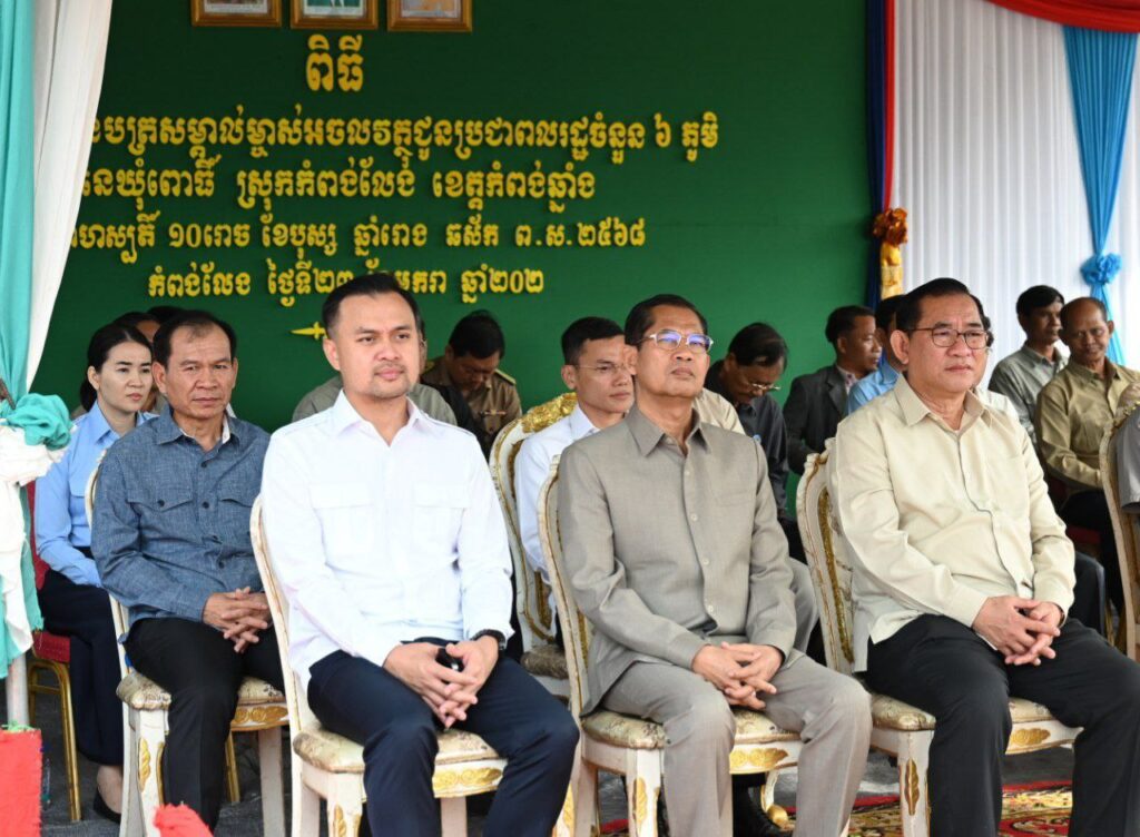 ព្រឹកថ្ងៃទី២៣ ខែមករា ឆ្នាំ២០២៥ ឯកឧត្ដមបណ្ឌិតសភាចារ្យ អ៊ុក រ៉ាប៊ុន ទេសរដ្ឋមន្ត្រីទទួលបន្ទុកបេសកកម្មពិសេស និងជាប្រធានក្រុមការងាររាជរដ្ឋាភិបាលចុះមូលដ្ឋានខេត្តកំពង់ឆ្នាំង បានអញ្ជើញប្រគល់វិញ្ញាបនបត្រសម្គាល់ម្ចាស់អចលនវត្ថុ ចំនួន ៥ ៨៨៥បណ្ណ ជូនប្រជាពលរដ្ឋចំនួន ៣ ០២៦គ្រួសារ នៅភូមិចំនួន៦ ក្នុងឃុំពោធិ៍ ស្រុកកំពង់លែង។